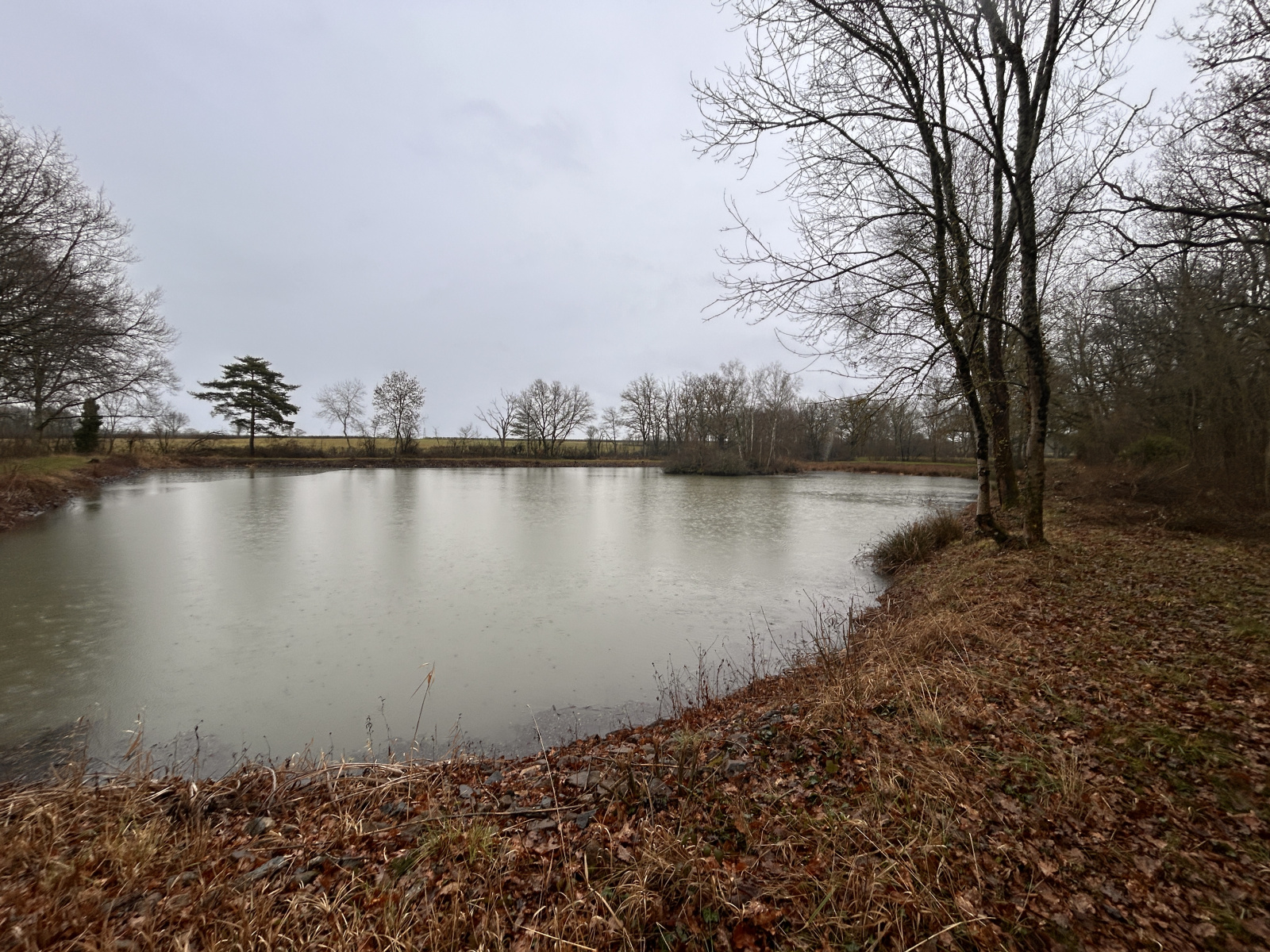 Accessible par chemin communal - Profondeur 2,50 m à la Bonde - Surface d'eau : 6000 m² environ.