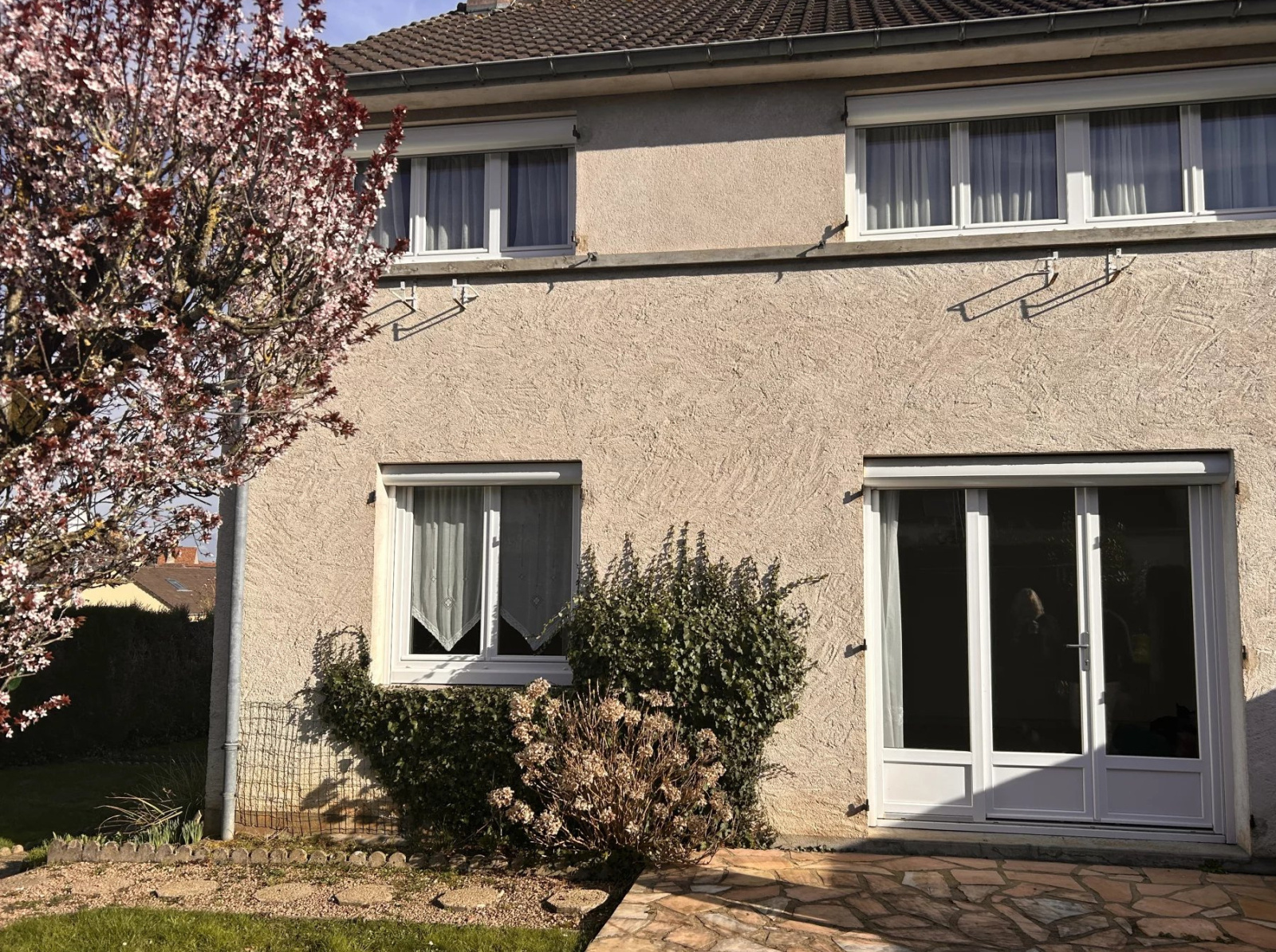 Maison mitoyenne sur un côté de 85 m² offrant au rez-de-chaussée ; entrée, séjour, cuisine et cellier avec WC. A l'étage, trois chambres, une salle de bains et des WC séparés. Un grenier, un garage et un jardin avec terrasse et cabanon complètent le bien. Huisseries en double vitrage, volets roulants électriques et chauffage au gaz. Les informations sur les risques auxquels ce bien est exposé sont disponibles sur le site Géorisques : georisques.gouv.fr